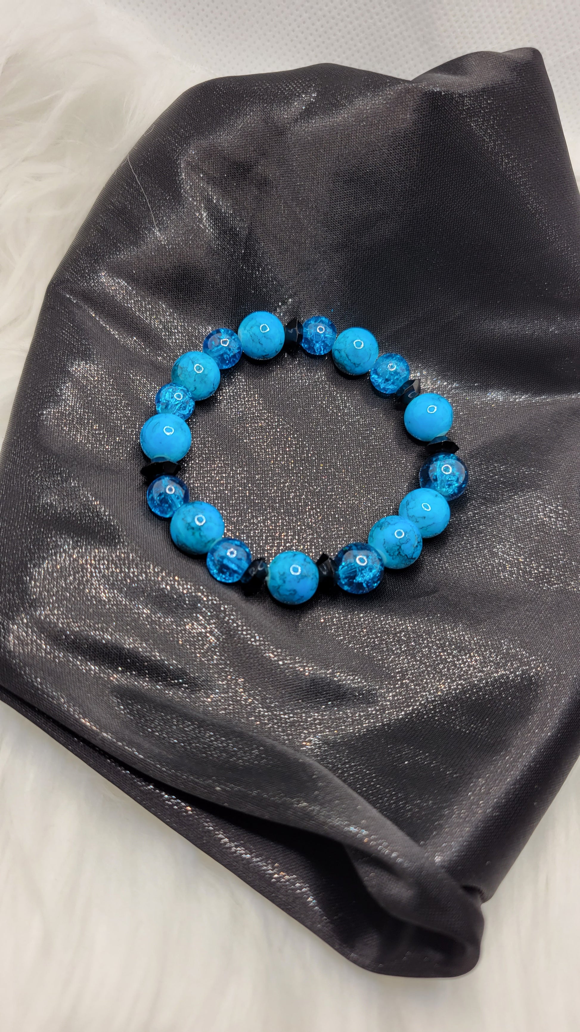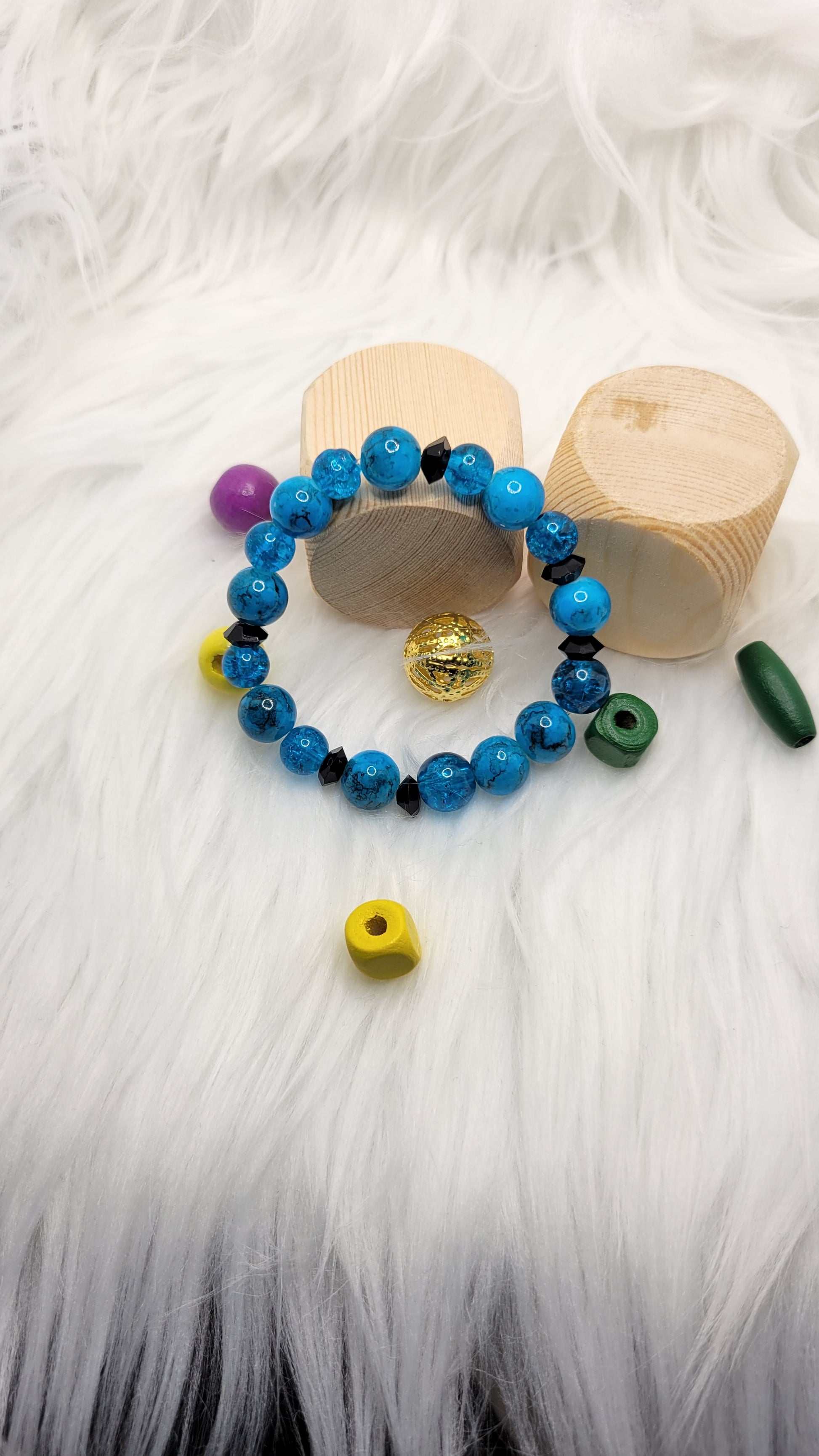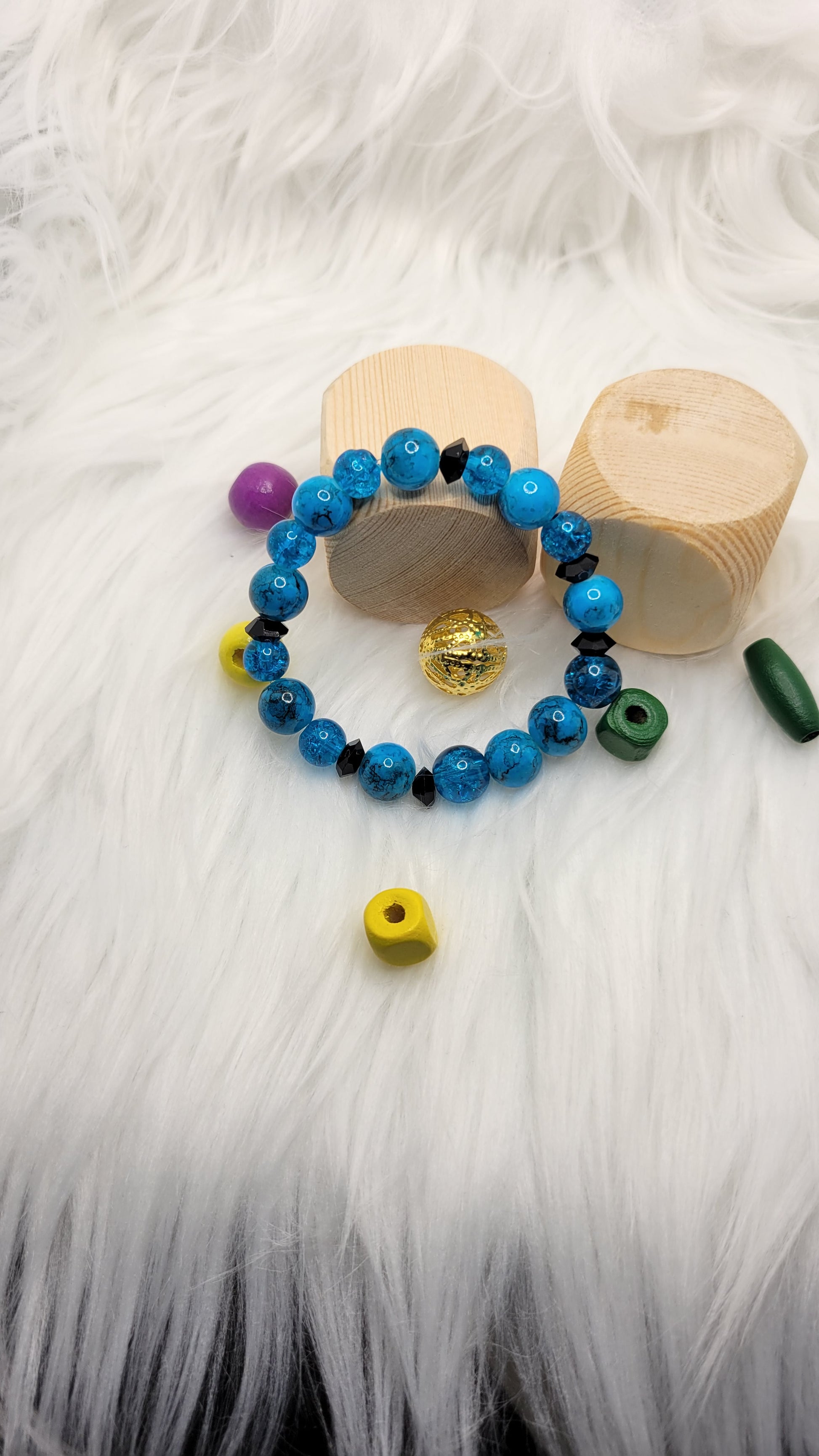 All pieces are made with a variety of precious or semi precious beads and other materials such as spacer beads, metal/non metal charms, jewelry elastic and non elastic string.