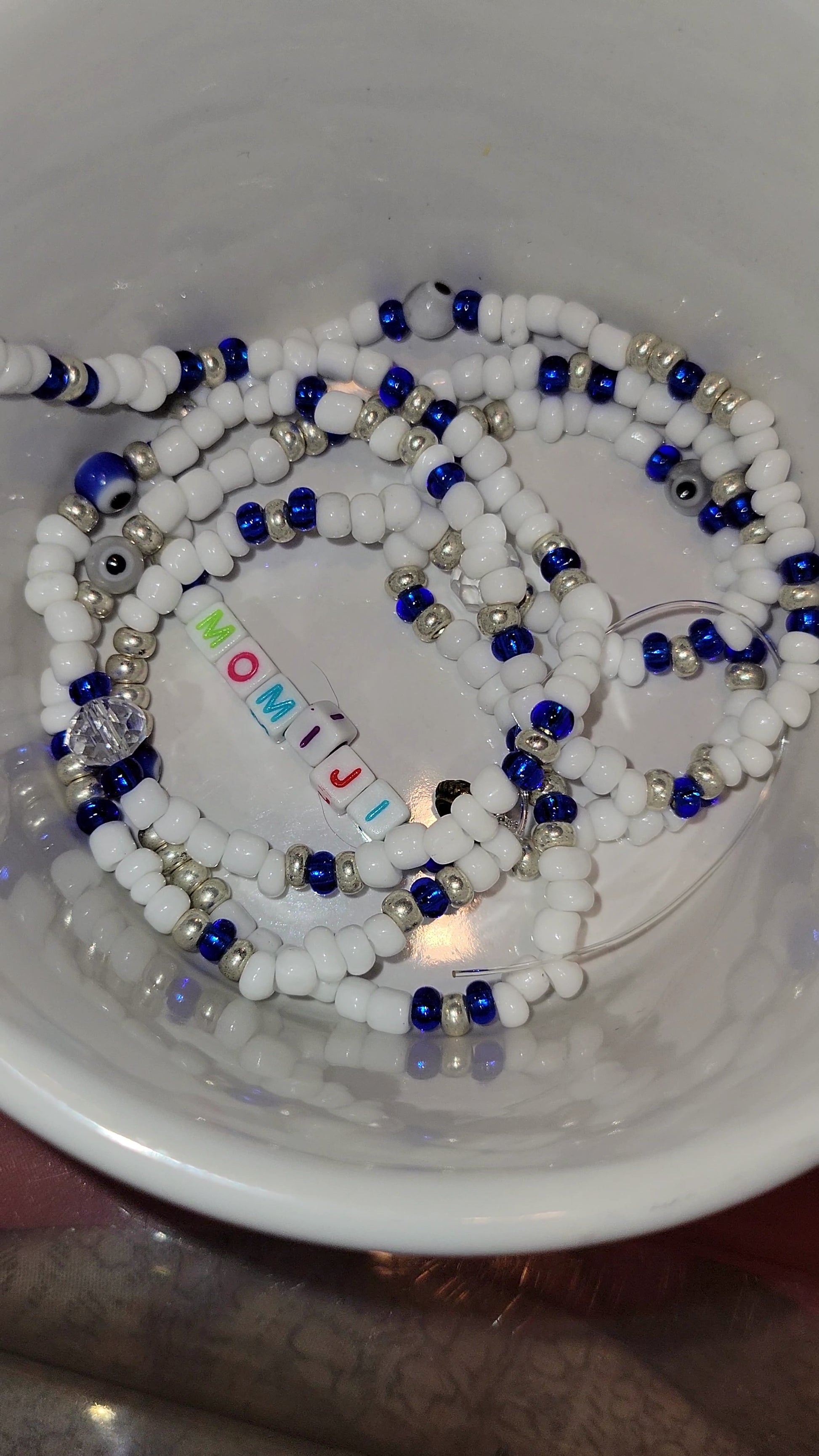 All pieces are made with a variety of precious or semi precious beads and other materials such as spacer beads, metal/non metal charms, jewelry elastic and non elastic string.